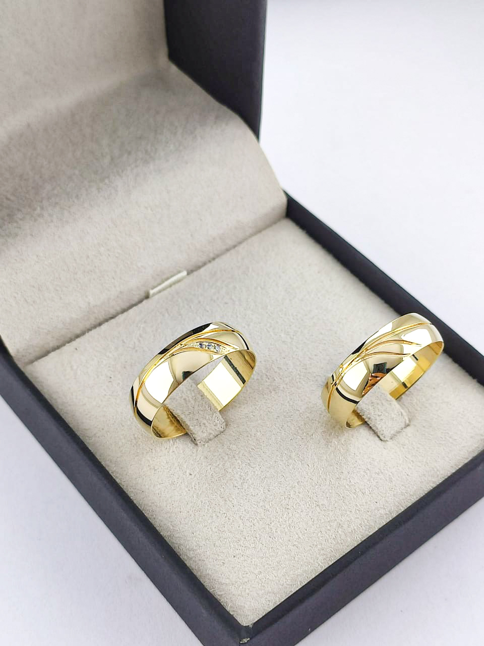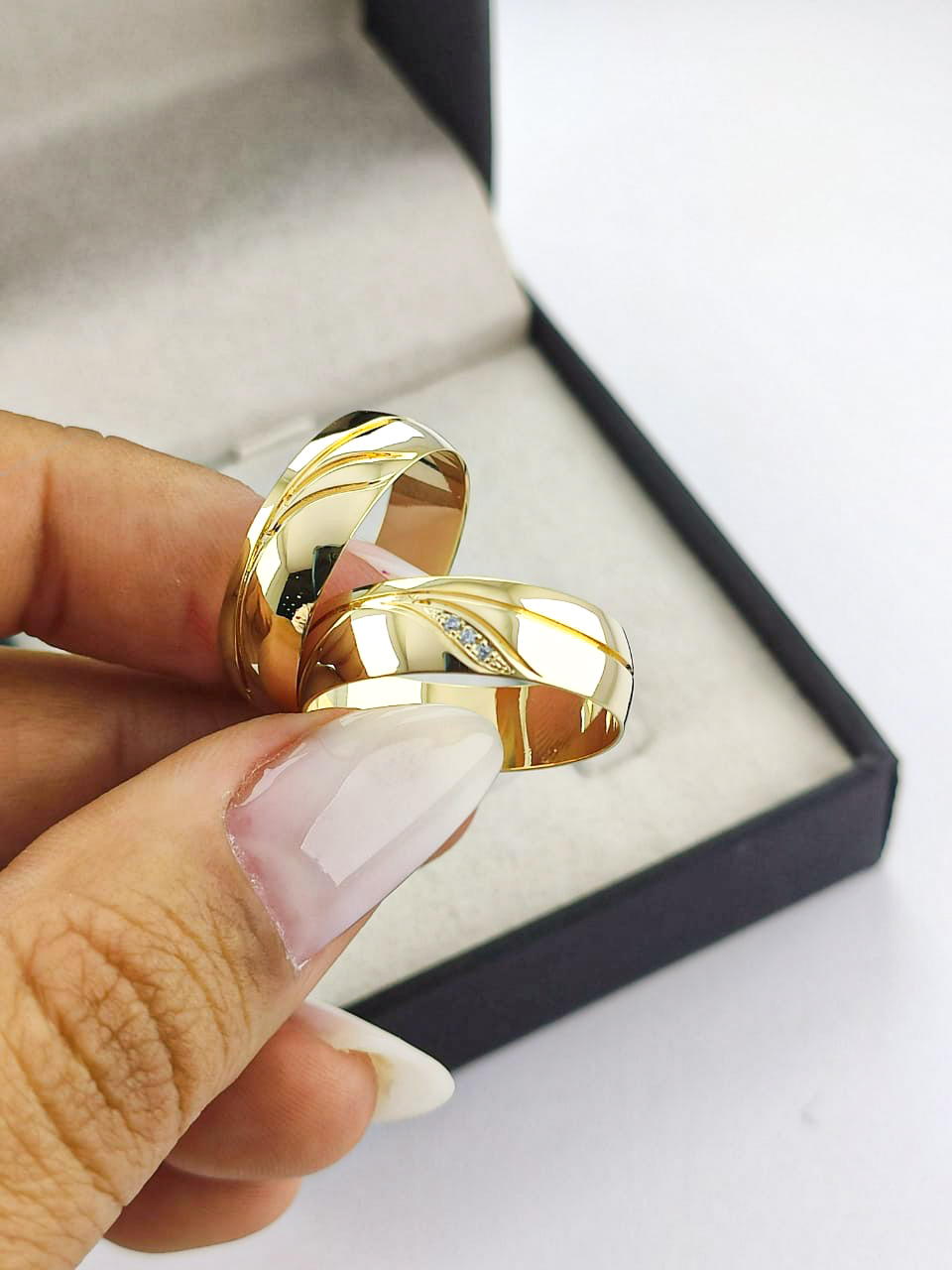 Aliança em Ouro 18k Trabalhada com Moissanitas.
