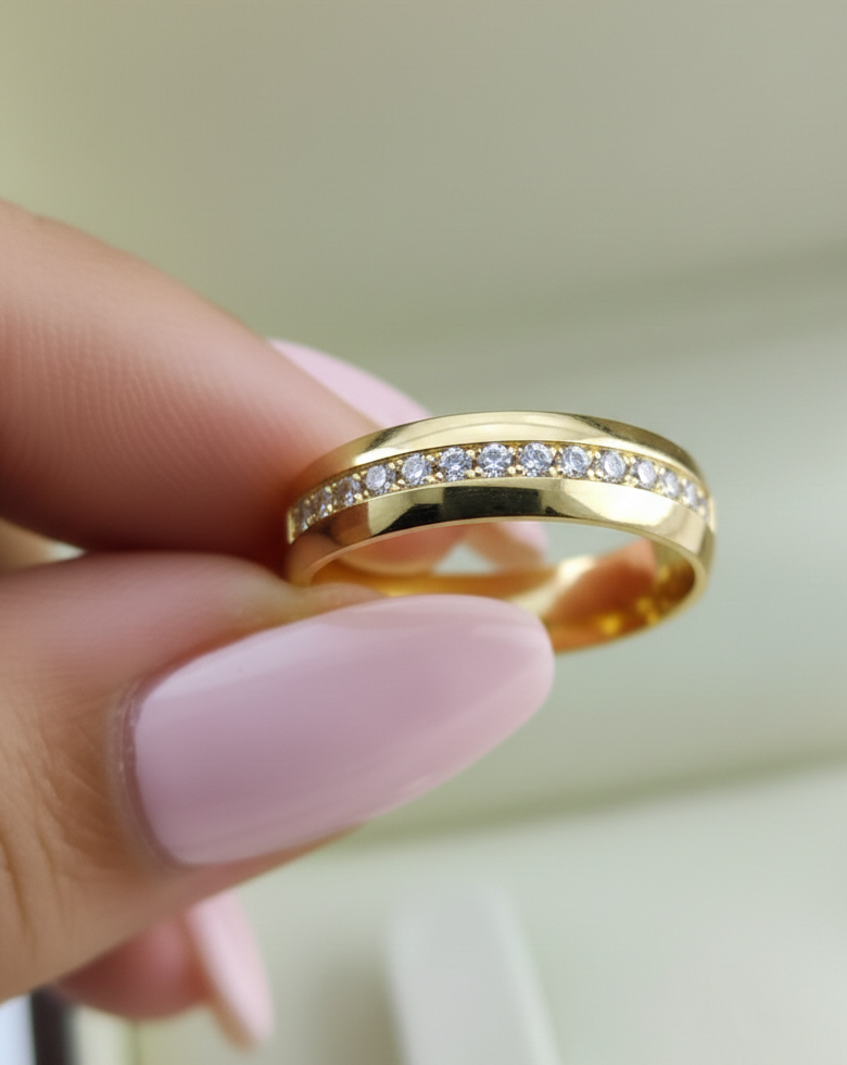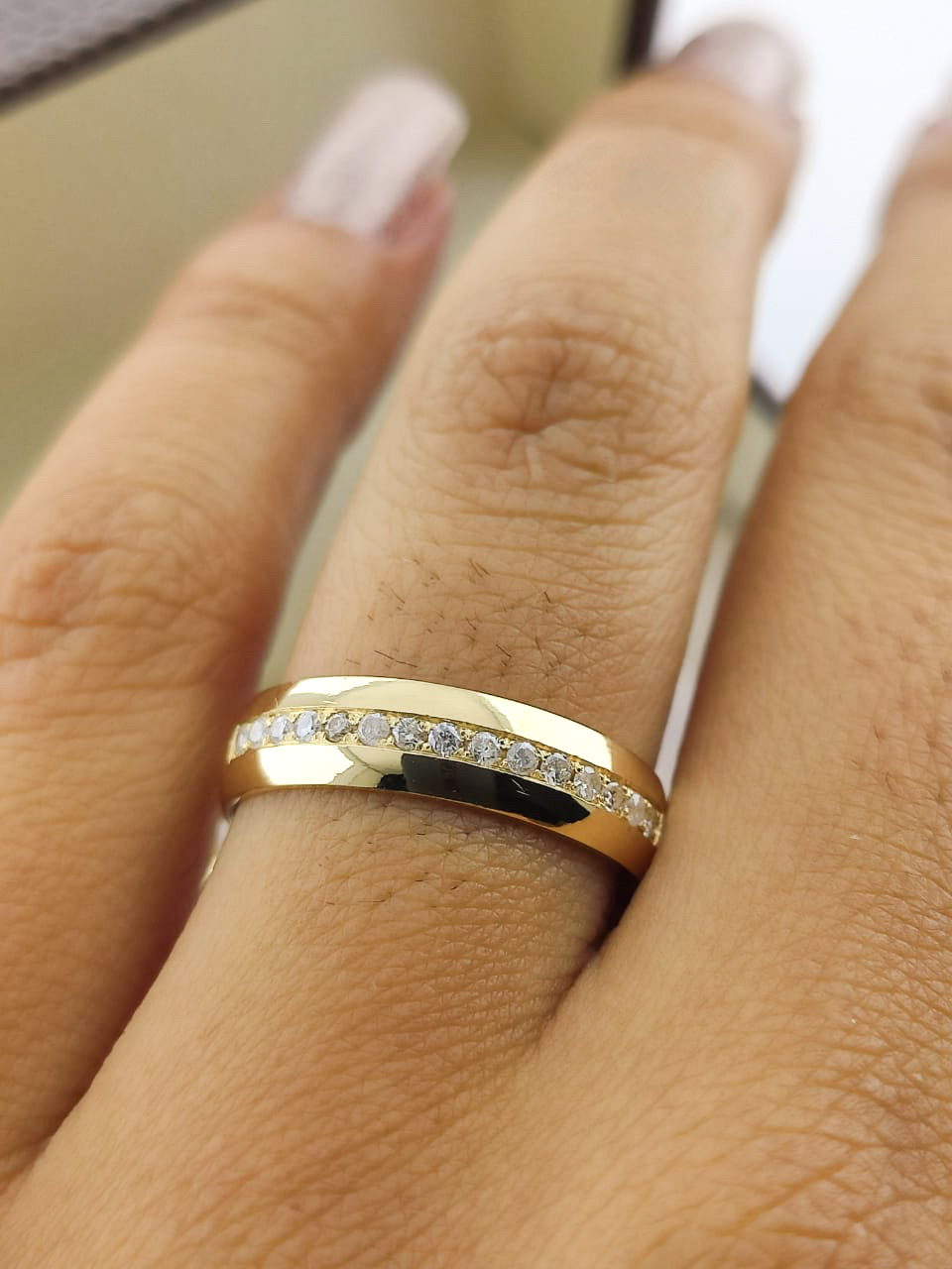 Aliança em Ouro 18k Meia Cana com Moissanite.