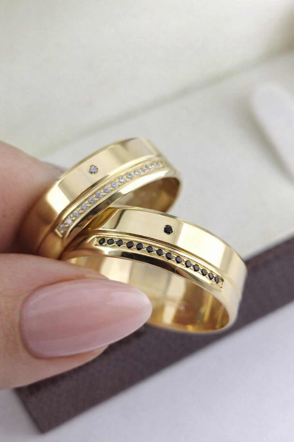 Aliança em Ouro 18k com Moissanitas.