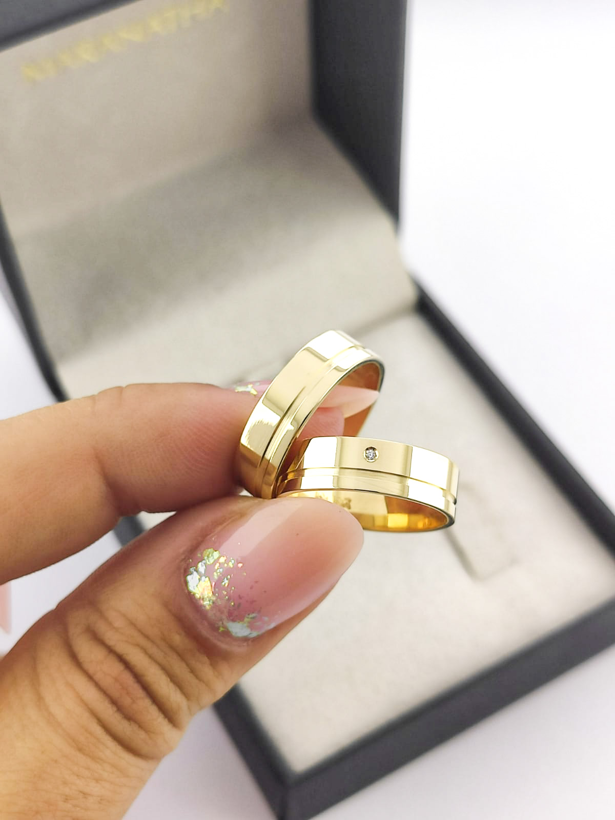 Aliança em Ouro 18k com Moissanita.