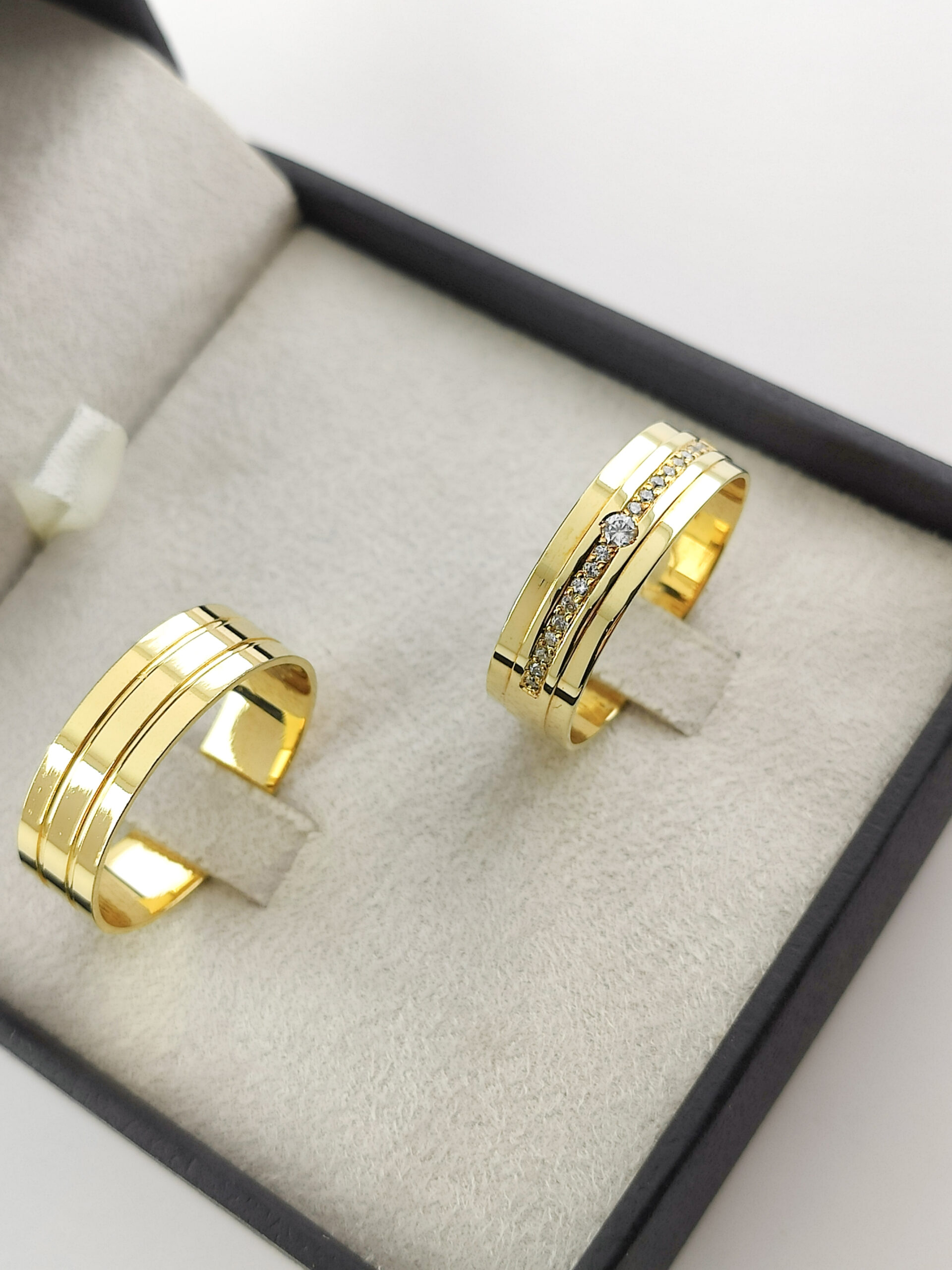 Aliança em Ouro 18k Reta com Moissanitas.