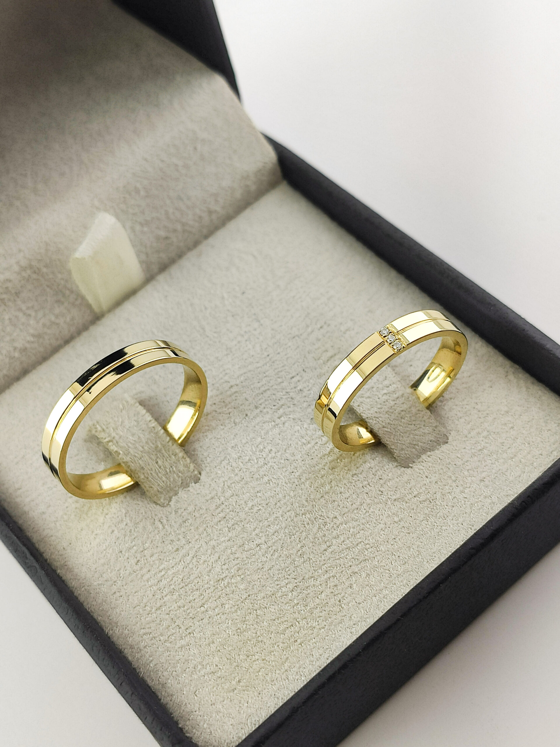 Aliança em Ouro 18k Reta com Moissanitas.