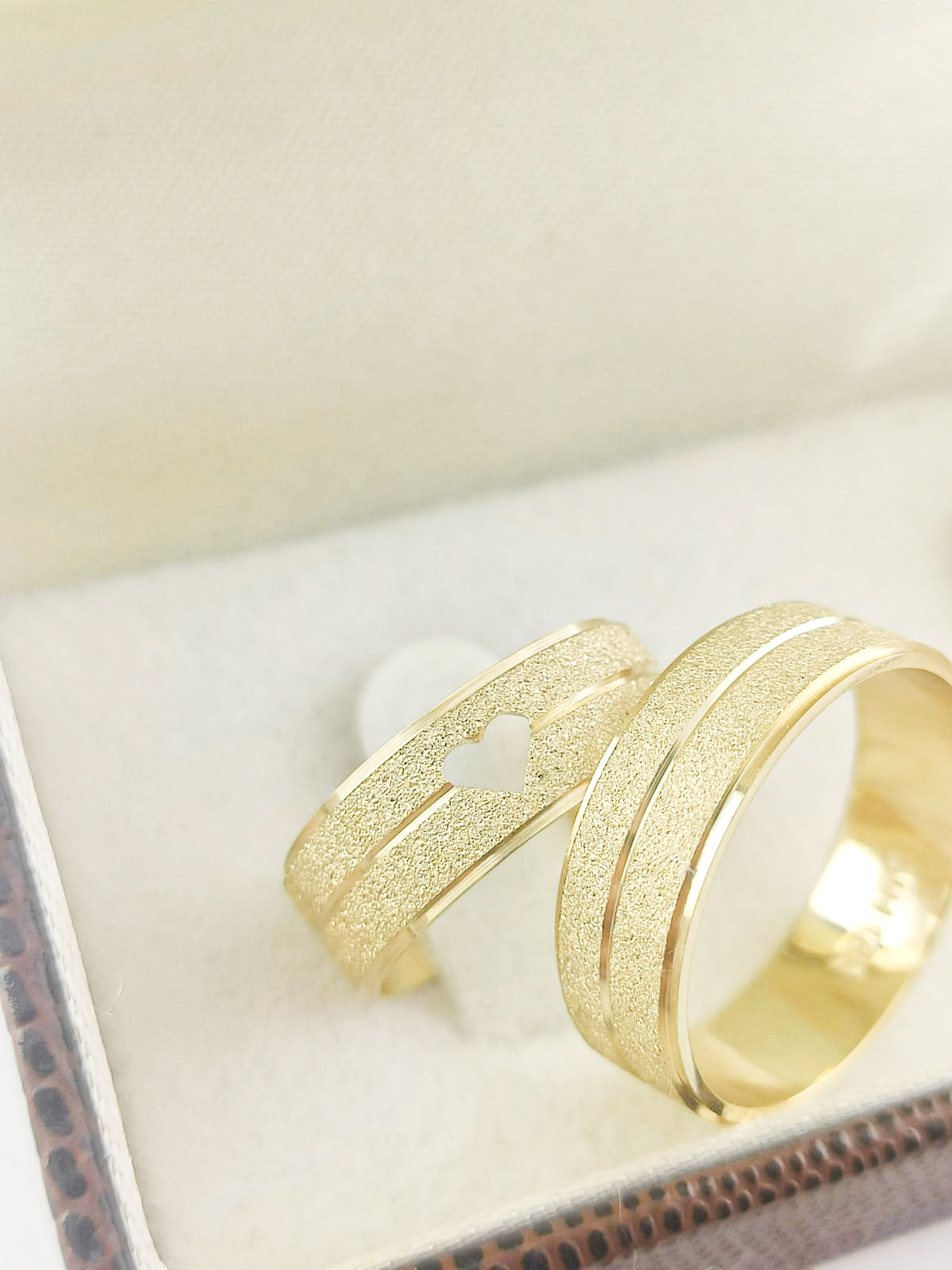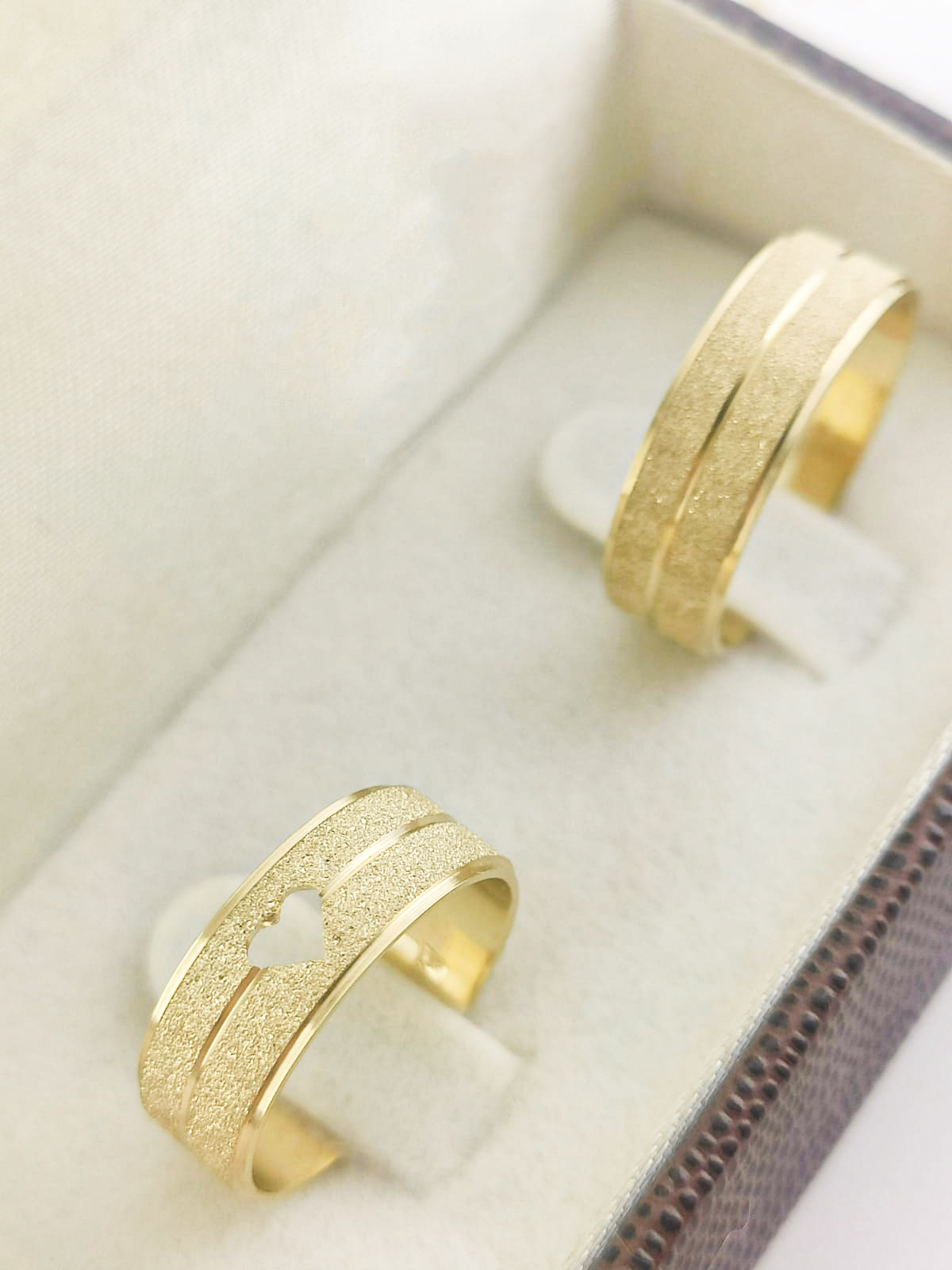 ACABAMENTO: Fosca com frisos polidos, trabalhado em formato de coração.