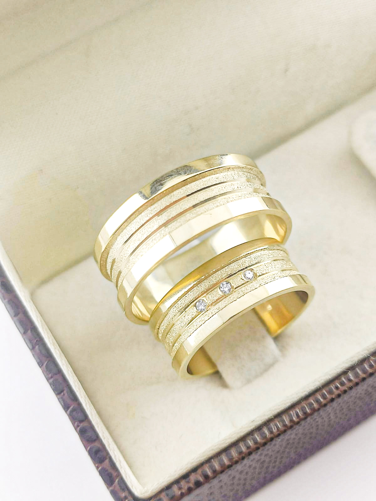 Aliança em Ouro 18k Reta com Moissanitas.