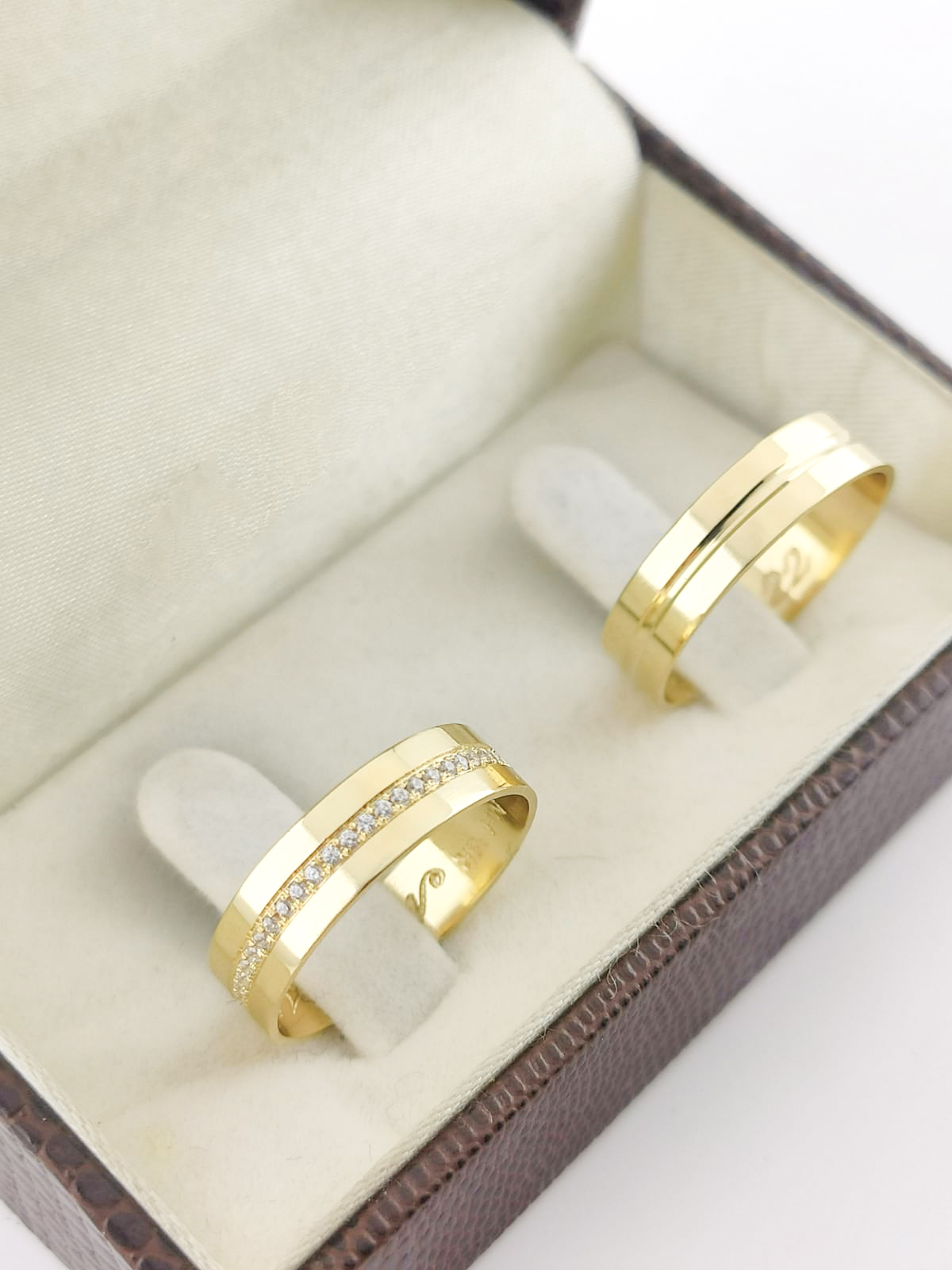 Aliança em Ouro 18k Reta com Moissanitas.